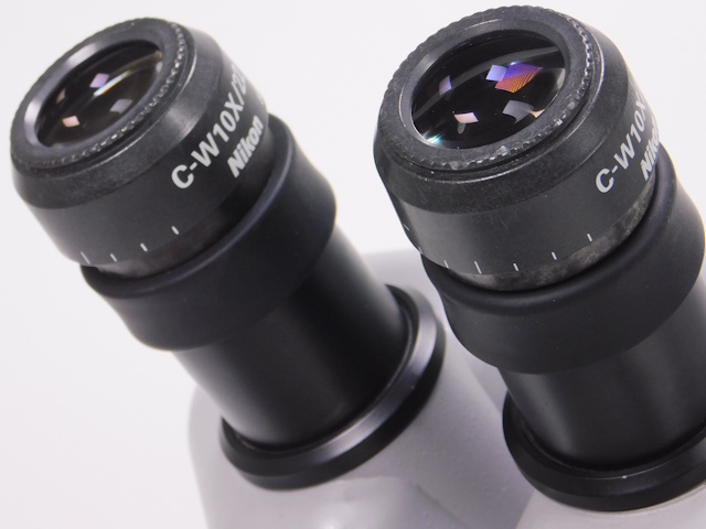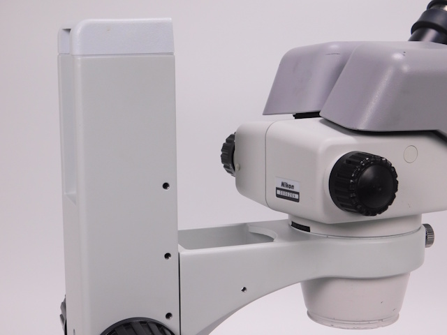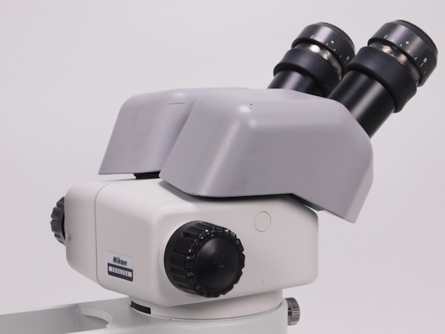 ニコンのズーム実体顕微鏡です。総合倍率は8倍から50倍までカバーします。外観はキズ、塗装剥がれがありますが光学系、メカ系に問題ありません。 |