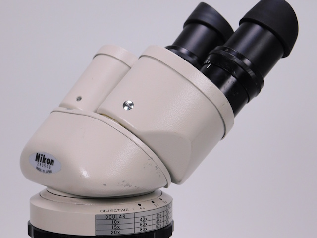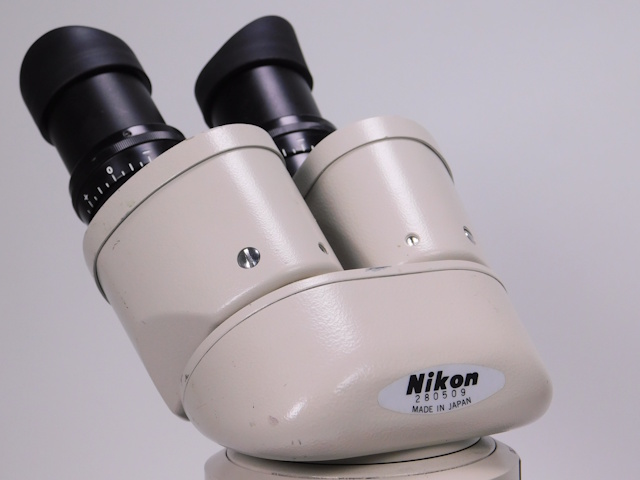 ニコンのズーム式実体顕微鏡です。総合倍率は8倍から40倍までカバーします。外観はキズ、塗装剥がれありますが光学系、メカ系、に問題ありません。(影響ないホコリ、キズ除く) |