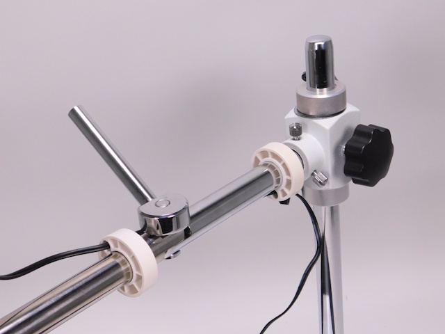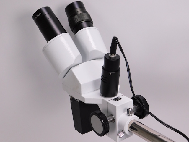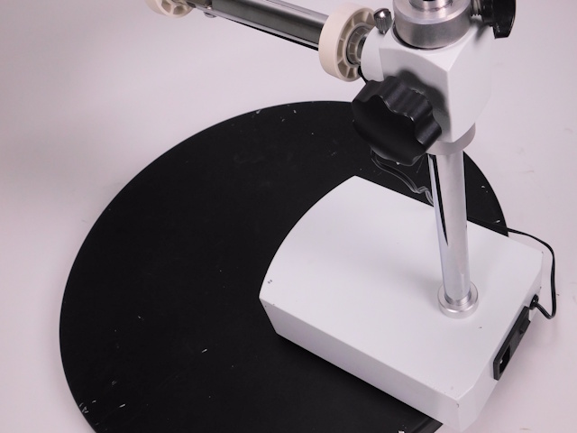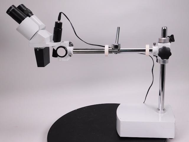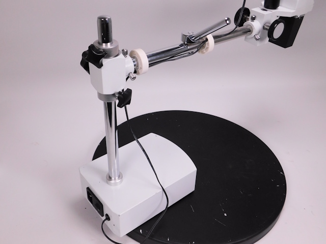レイマーの固定式実体顕微鏡とラk者照明付きのユニバーサル架台です。総合倍率は10倍になります。照明はLEDになります。接眼レンズから架台迄の奥行は約53cmになります。外観はキズ、塗装剥がれが若干ありますが光学系、メカ系に問題ありません。 |