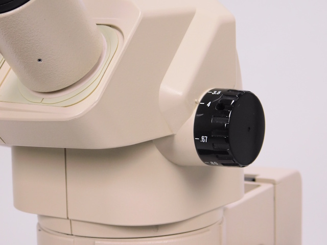 オリンパスのズーム式実体顕微鏡です。総合倍率は10.05倍から60倍までカバーします。外観はキズ、塗装剥がれが少しありますが光学系、メカ系に問題ありません。 |