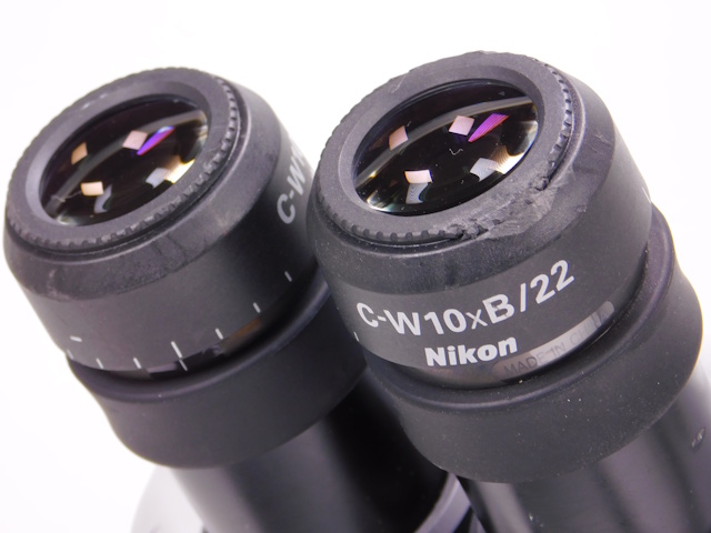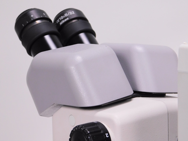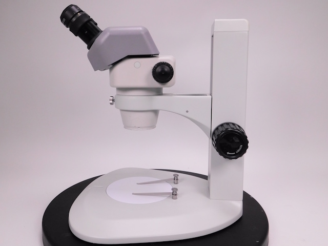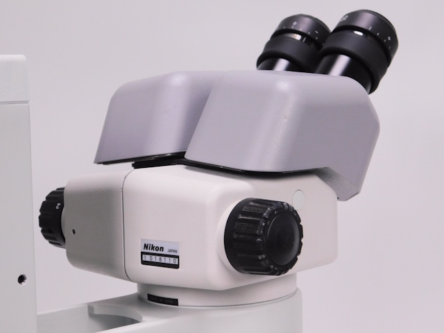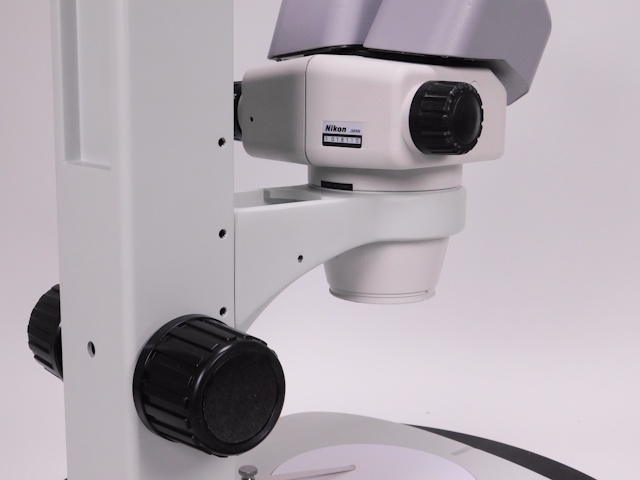 ニコンのズーム実体顕微鏡です。総合倍率は8倍から50倍までカバーします。外観は若干のキズ、塗装剥がれがありますが光学系、メカ系に問題ありません。 |