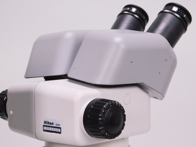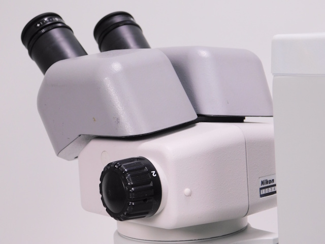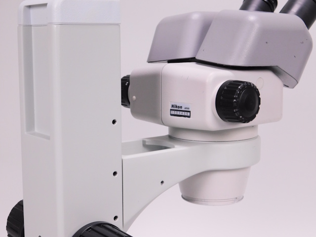 ニコンのズーム実体顕微鏡です。総合倍率は12倍から75倍までカバーします。外観は若干のキズ、塗装剥がれがありますが光学系、メカ系に問題ありません。 |