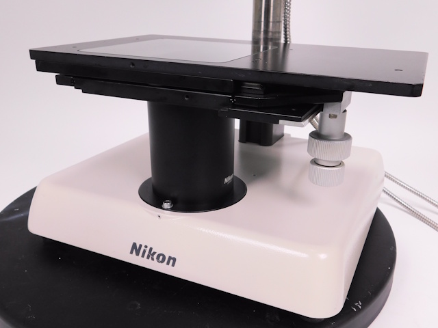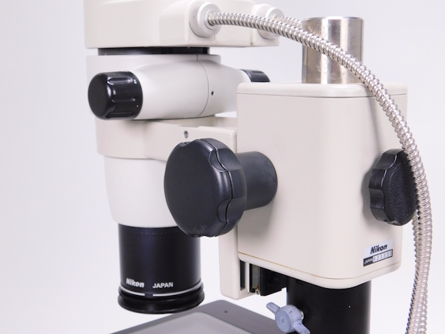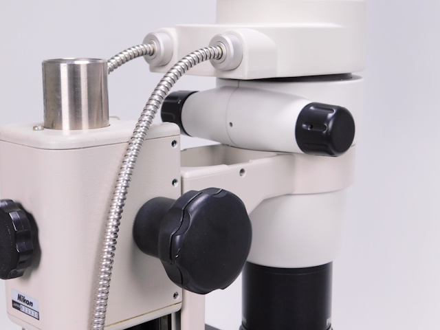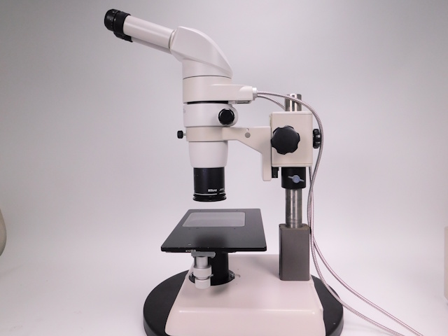 ニコンズーム式実体顕微鏡です。総合倍率は15倍から94.5倍までカバーします。同軸落射照明装置、XYステージ付き架台のセットとなります。。外観はキズ、塗装剥げがありますが光学系、メカ系、照明系に問題ありません。(影響ないホコリ、キズ除く) |