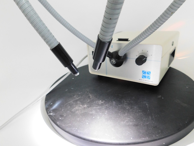 VolpiI製ファイバー照明装置です。2本フレキシブルファイバー付きで、照明位置は自由に変えることができます。ハロゲンランプは新品のランプと交換しております。抜き差しできるフィルターが付属し、色温度を変えることができます。調光、絞り機能付きです。外観は傷、塗装はげがあります。 |
