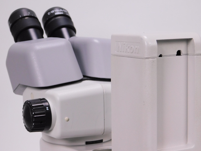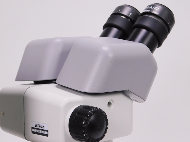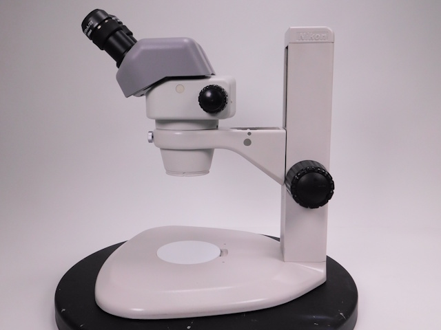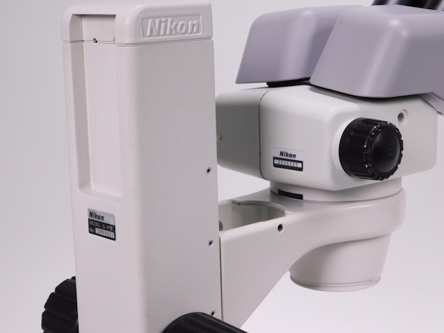 ニコンのズーム実体顕微鏡です。総合倍率は8倍から50倍までカバーします。外観は若干のキズ、塗装剥がれがありますが光学系、メカ系に問題ありません。 |