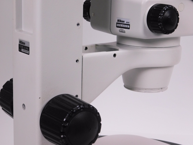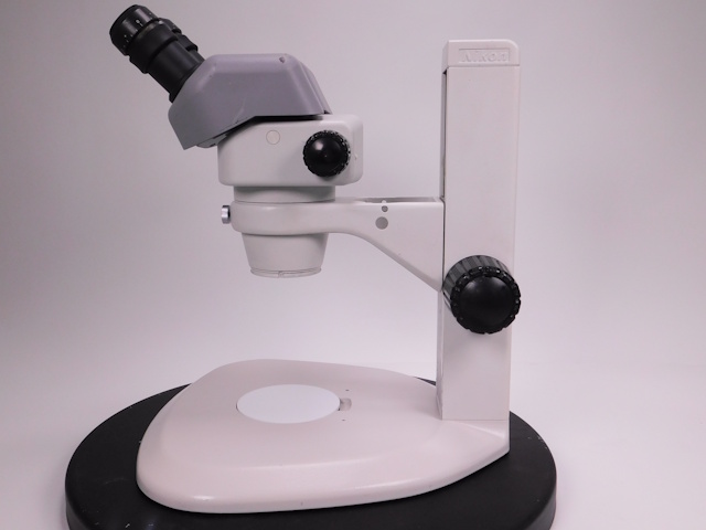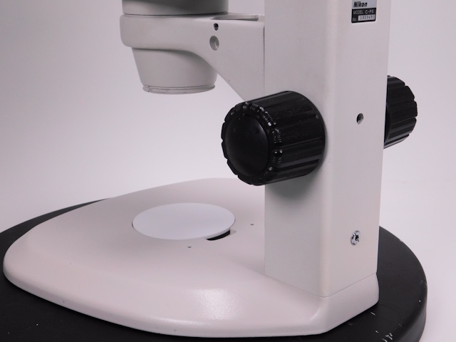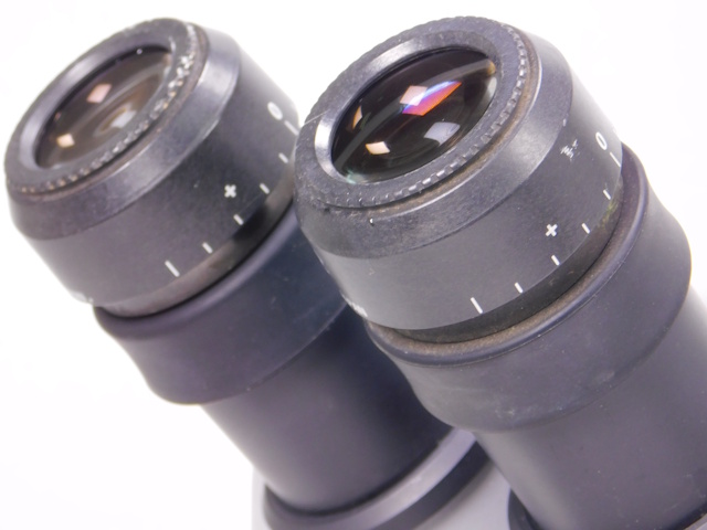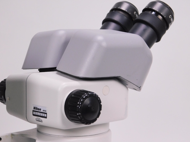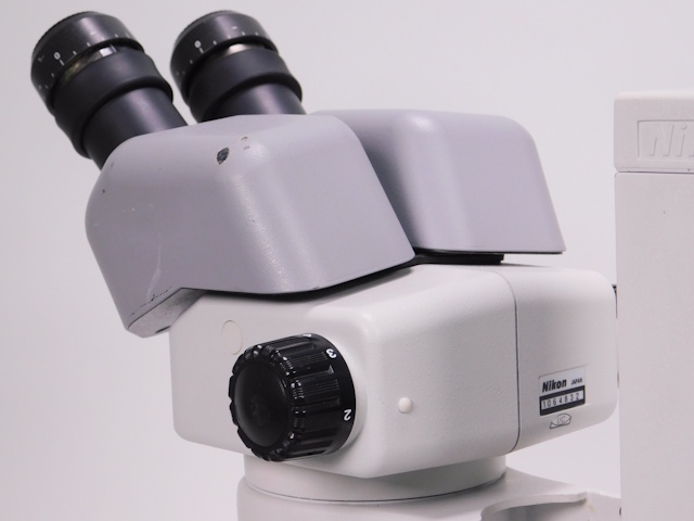 ニコンのズーム実体顕微鏡です。総合倍率は8倍から50倍までカバーします。外観はのキズ、塗装剥がれがあり、接眼レンズに若干の拭き傷がありますが、その他.光学系、メカ系に問題ありません。 |