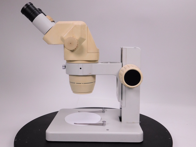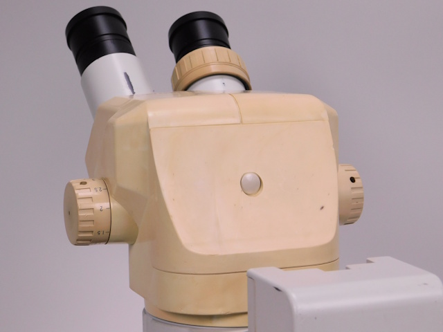オリンパスのズーム式実体顕微鏡です。総合倍率は6.7倍から40倍までカバーします。外観はカバーの変色、キズ、塗装剥がれありますが光学系、メカ系に問題ありません。(影響ないホコリ、キズ除く) |