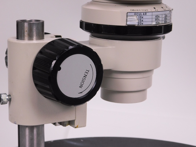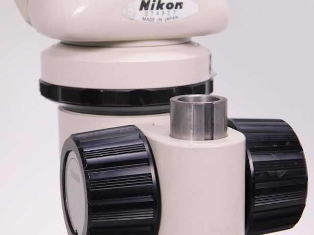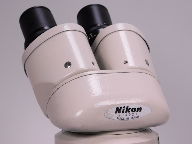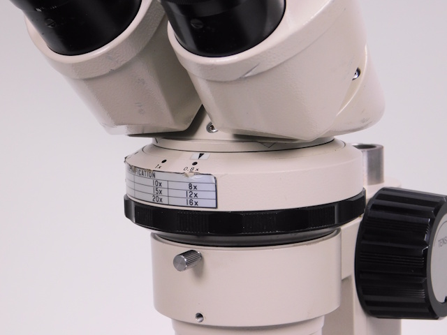 ニコンのズーム式実体顕微鏡です。総合倍率は8倍から40倍までカバーします。外観はキズ、塗装剥がれありますが光学系、メカ系、に問題ありません。(影響ないホコリ、キズ除く) |
