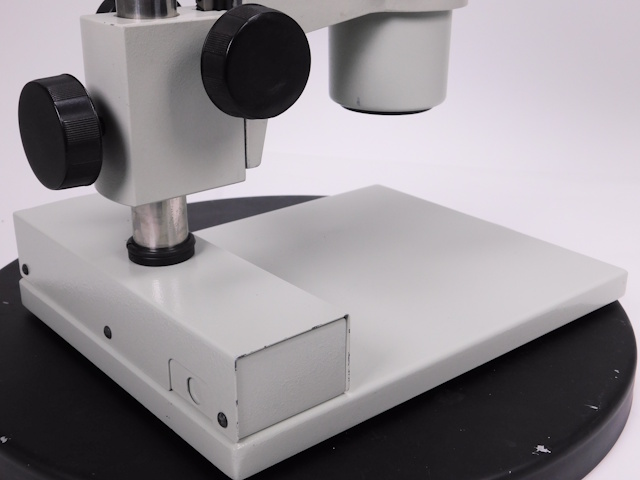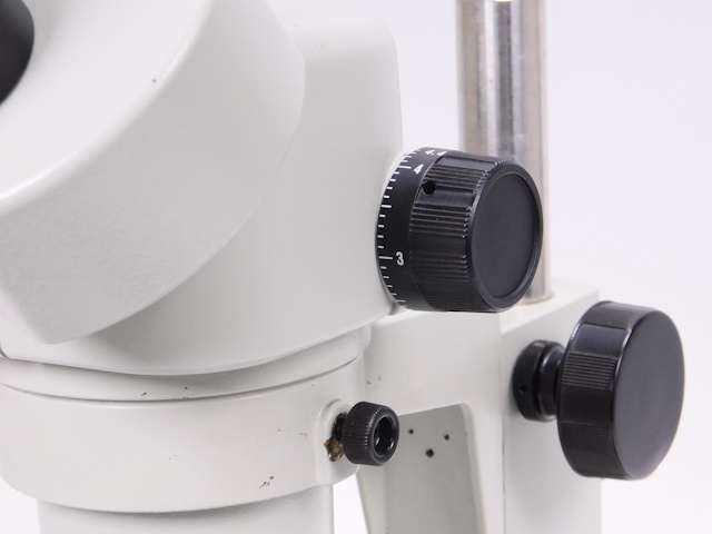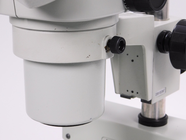 カートンのズーム式実体顕微鏡です。総合倍率は10倍から44倍までカバーします。外観はキズ、塗装剥げがありますが光学系、メカ系に問題ありません。 |