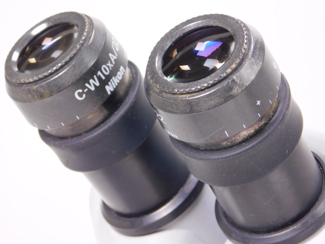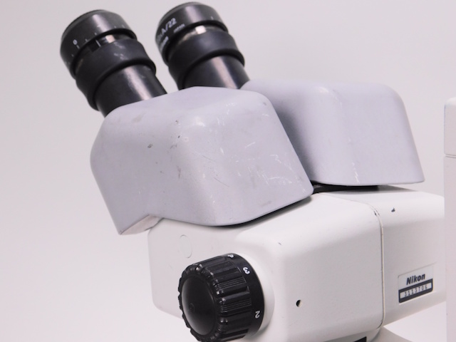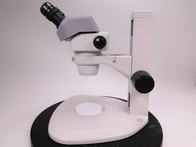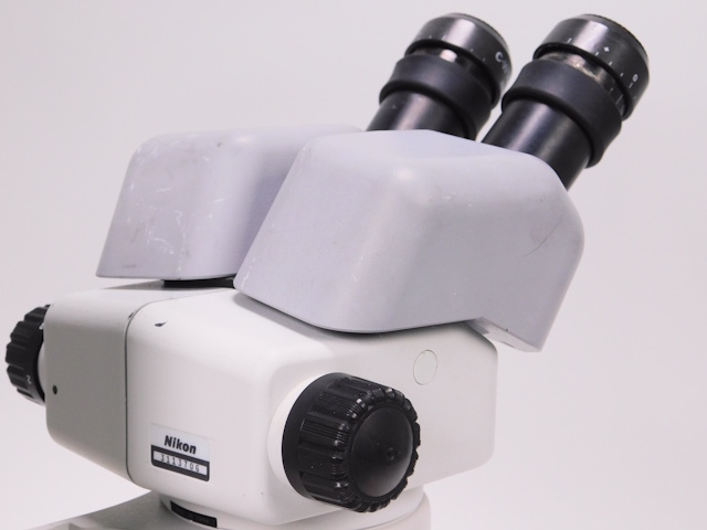 ニコンのズーム実体顕微鏡です。総合倍率は8倍から50倍までカバーします。外観はのキズ、塗装剥がれがありますが、その他.光学系、メカ系に問題ありません。 |