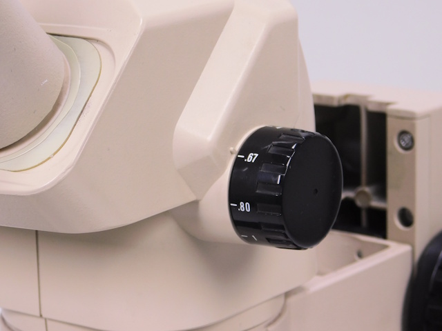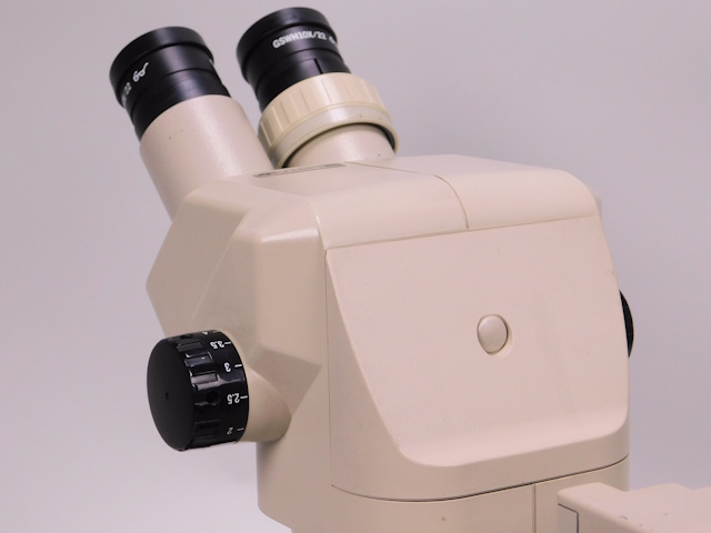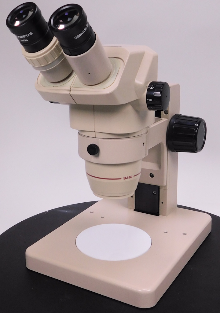 オリンパスのズーム式実体顕微鏡です。総合倍率は6.7倍から40倍までカバーします。外観はキズ、塗装剥がれが少しありますが光学系、メカ系に問題ありません。 |