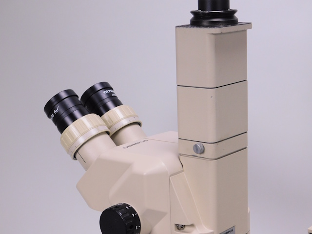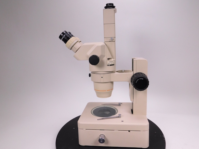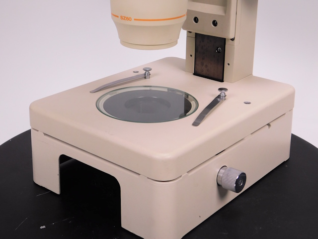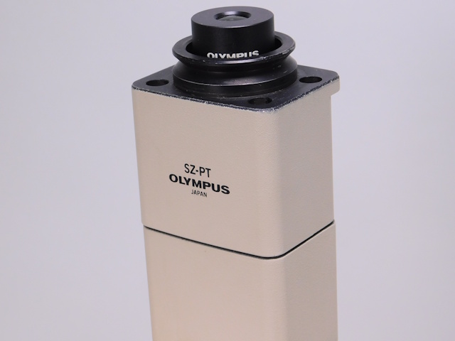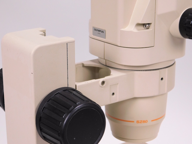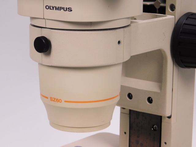 オリンパス実体顕微鏡SZ6045-TRです。ズーム総合倍率は10倍〜63倍までカバーします。3眼鏡筒仕様です。外観はキズ、塗装剥がれがありますが光学系、メカ系に問題ありません。(影響ないホコリ、キズ除く) |