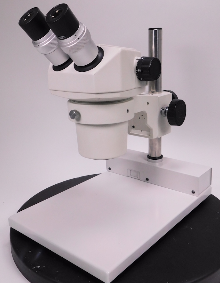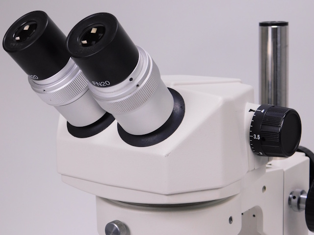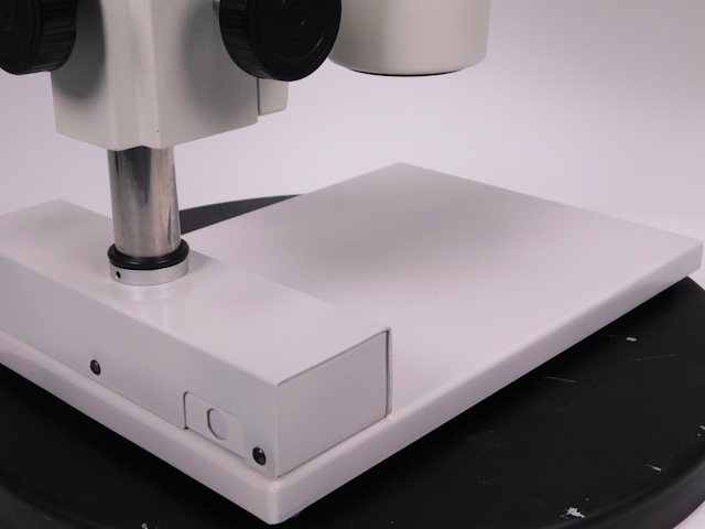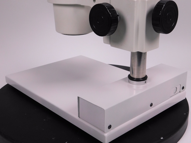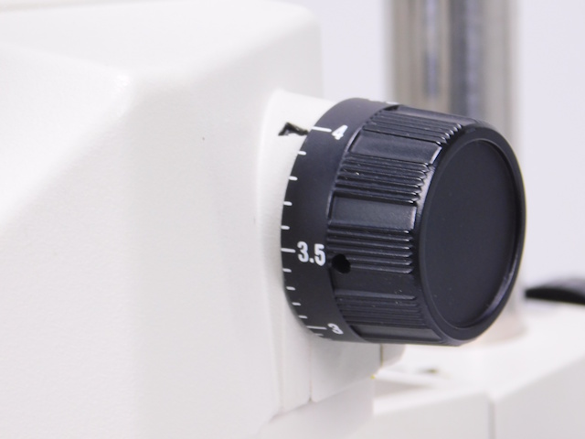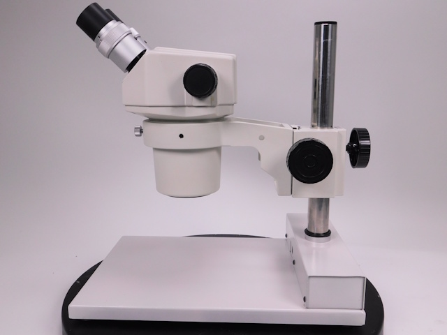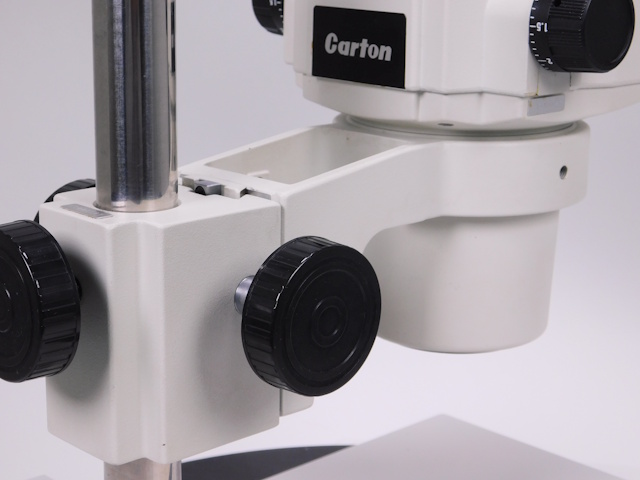 カートンのズーム式実体顕微鏡です。総合倍率は8倍から40倍までカバーします。外観はキズ、塗装剥げがありますが光学系、メカ系、照明系に問題ありません。(影響ないホコリ、キズ除く) |