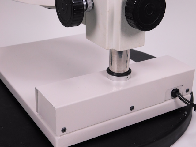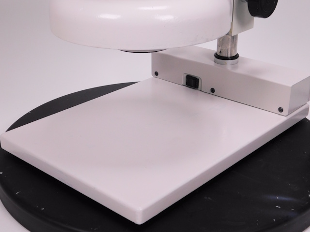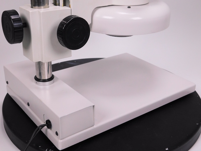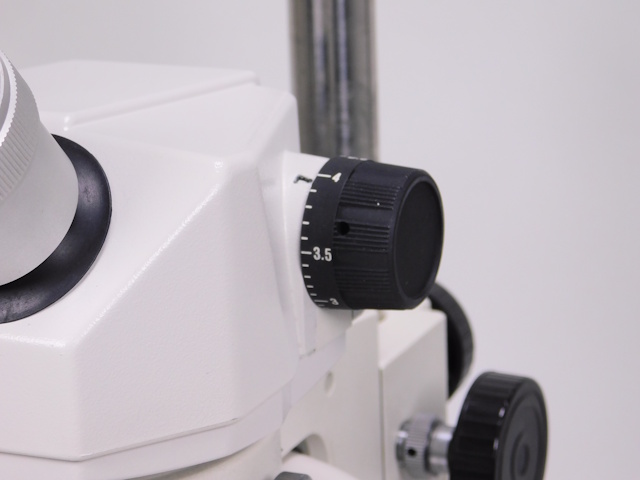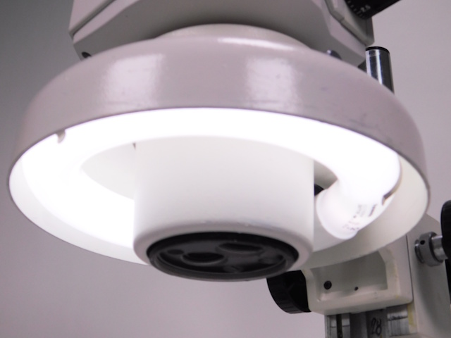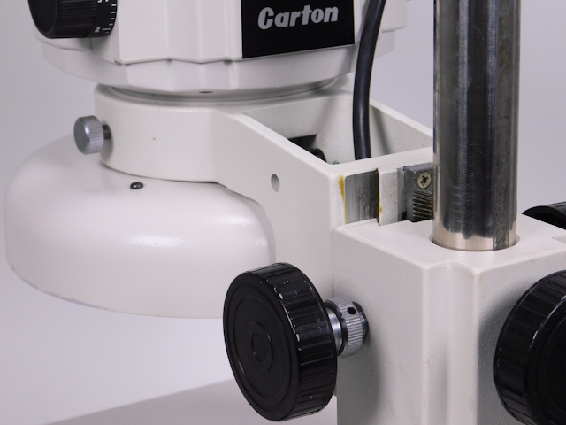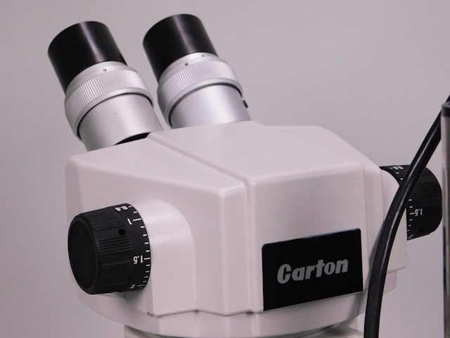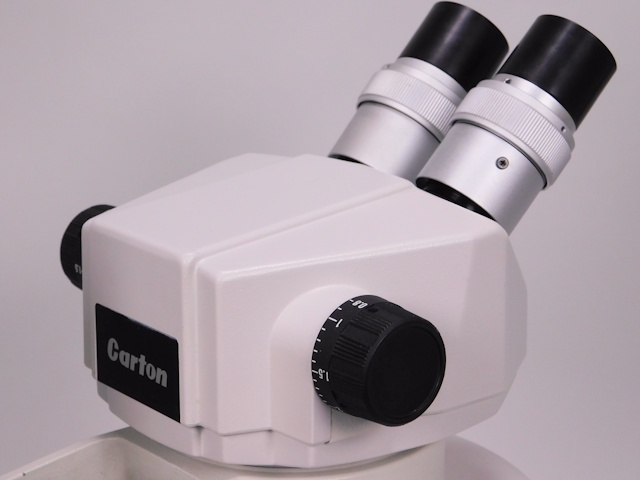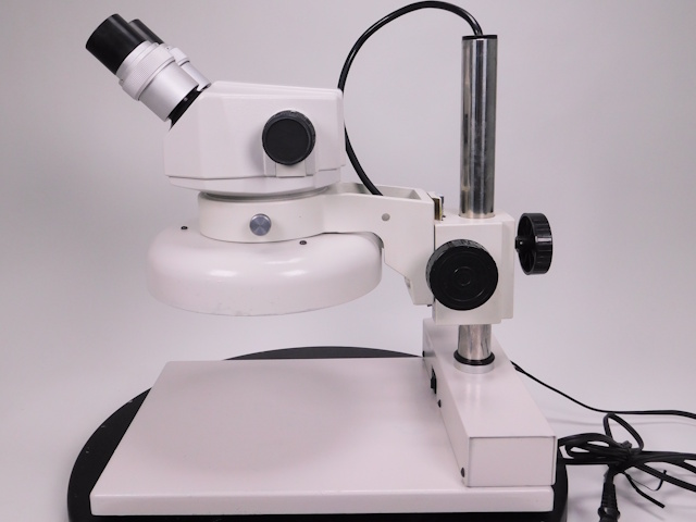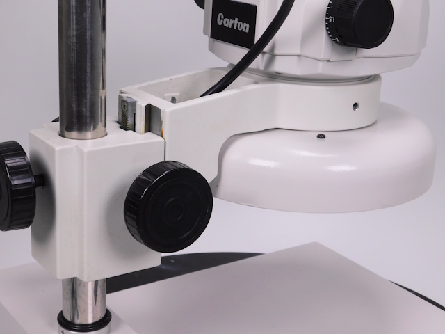 カートンのズーム式実体顕微鏡です。総合倍率は8倍から40倍までカバーします。外観はキズ、塗装剥げがありますが光学系、メカ系、照明系に問題ありません。(影響ないホコリ、キズ除く) |