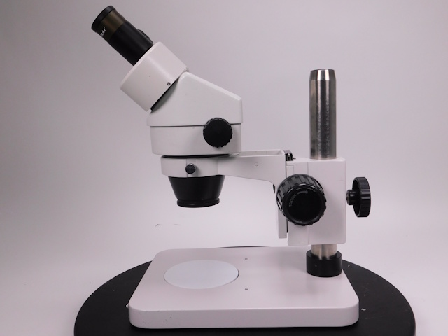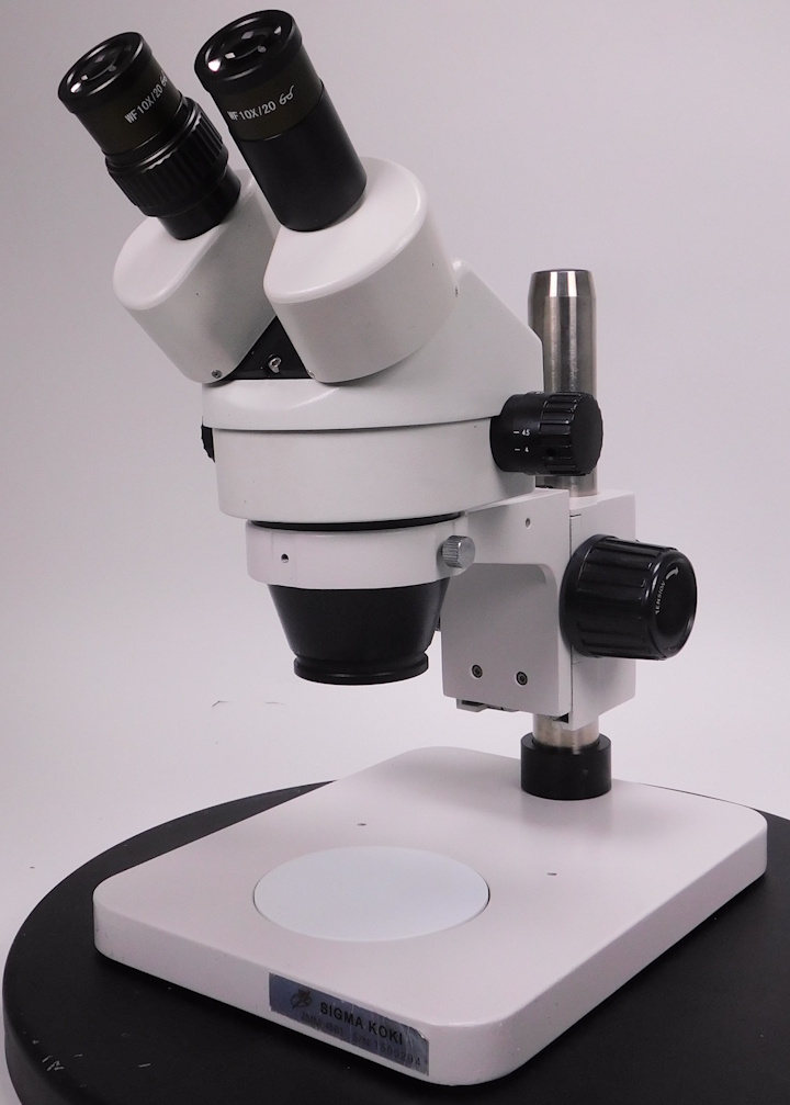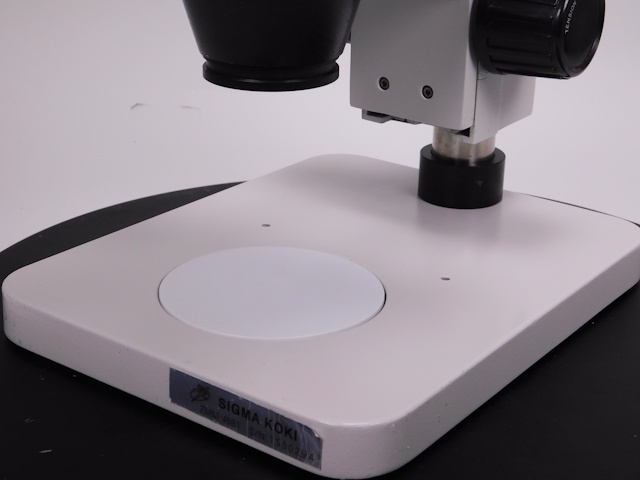 シグマ光機のズーム式実体顕微鏡です。総合倍率は7倍から45倍までカバーします。リング照明を取付けるアダプターが付いています。外観はキズ、塗装剥げがありますが光学系、メカ系、照明系に問題ありません。 |