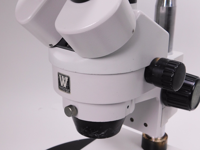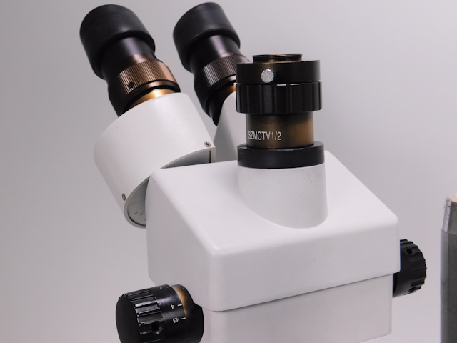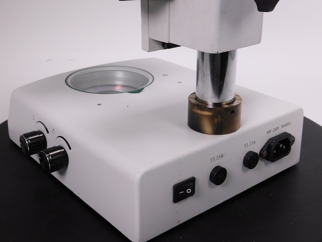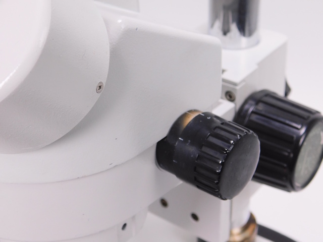 レイマーのズーム式実体顕微鏡です。総合倍率は7倍から45倍までカバーします。架台に透過照明がついています(フィルター類は付属しません)。ガラスとアクリル白黒プレートが付属します。顕微鏡は三眼仕様となり、Cマウントタイプのカメラを直接取付出来ます。外観はキズ、塗装剥げがありますが光学系、メカ系、照明系に問題ありません。 |