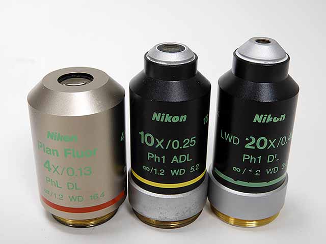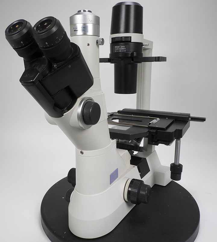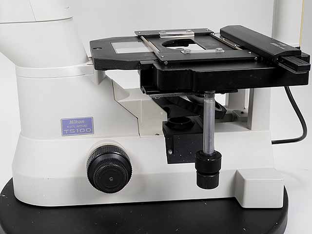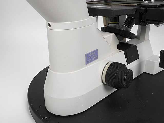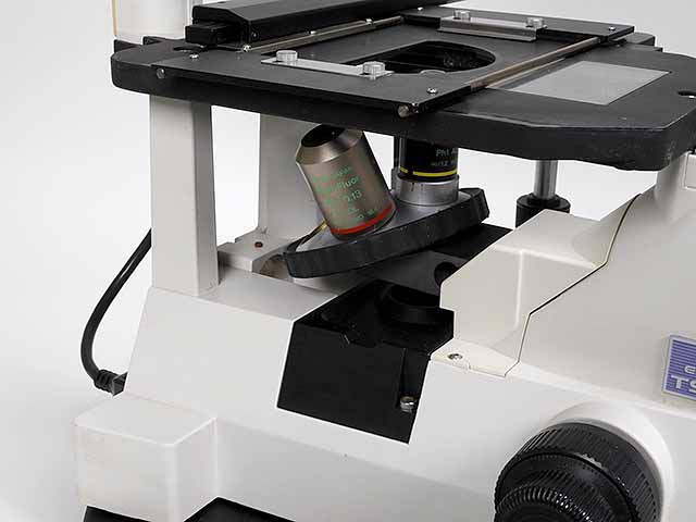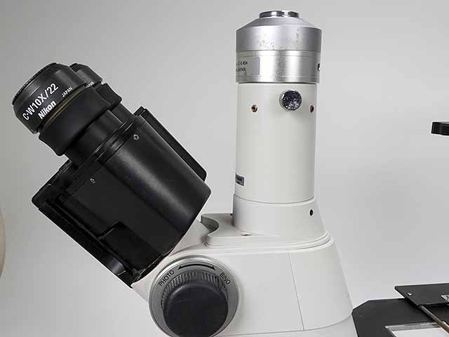 ニコンの倒立型培養顕微鏡です。無限遠補正設計CFI対物4x,10x,20xとの組合せになります。全倍率で位相差観察ができます。光学的、メカ的、電気的な問題は特にありません。(影響ないホコリ、キズ除く) |