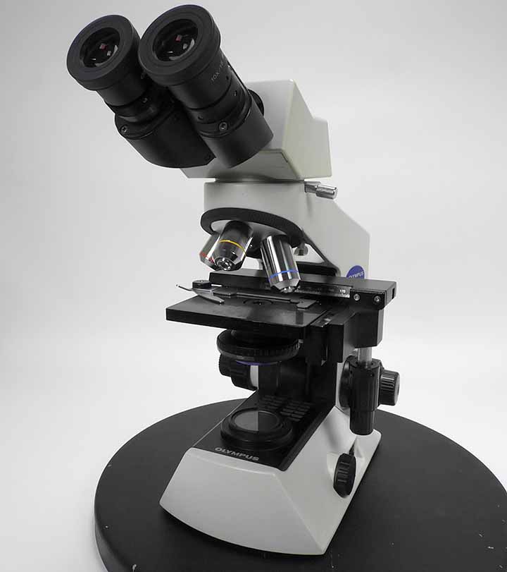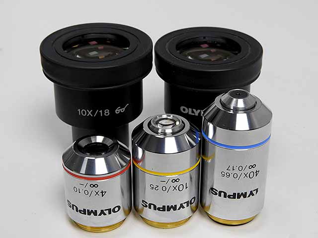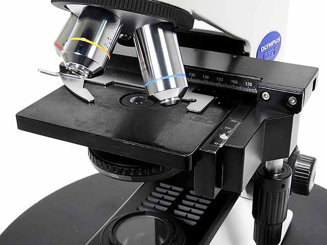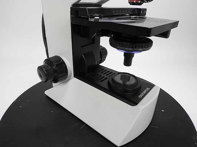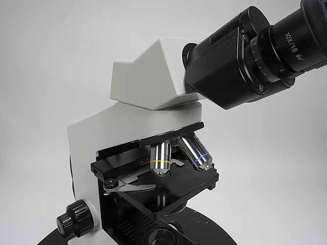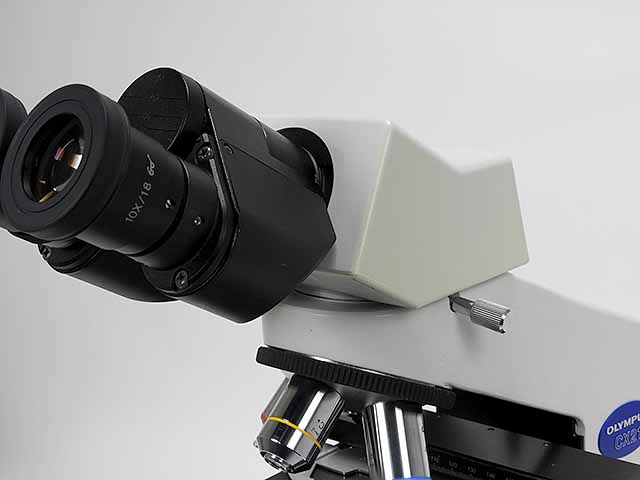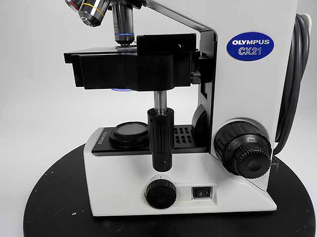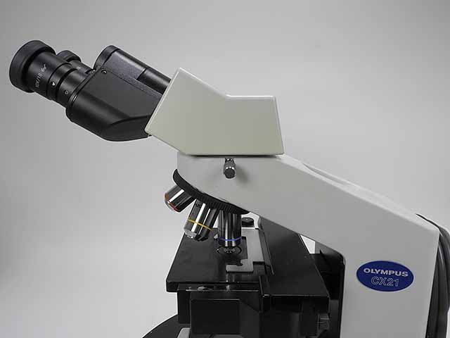 オリンパスの無限補正光学系の生物顕微鏡CX21です。UISプラン対物レンズ4x,10x,40xが付きます。鏡筒は双眼鏡筒です。 |