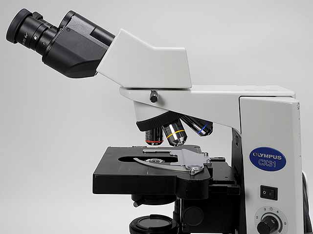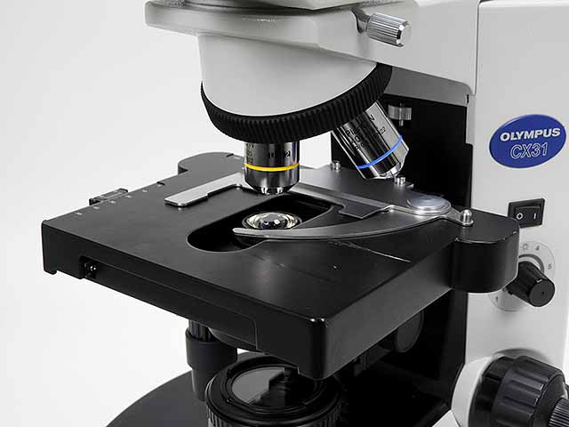 オリンパスの無限補正光学系の生物顕微鏡CX31です。UISプラン対物レンズ4x,10x,40xが付きます。鏡筒は双眼鏡筒です。 |