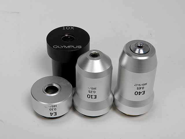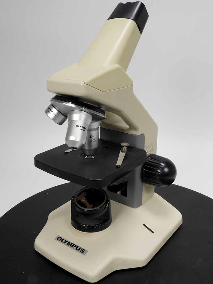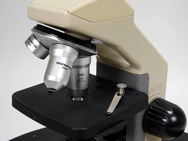 オリンパス生物顕微鏡E鏡基です。オーバホール実施済。アクロマートレンズ10倍、40倍、100倍の組合せです。鏡筒は単眼鏡筒です。光学系、メカ系特に問題ありません。 |