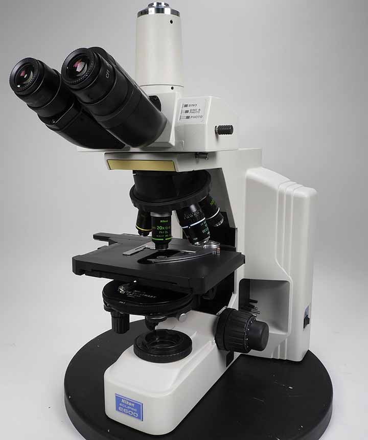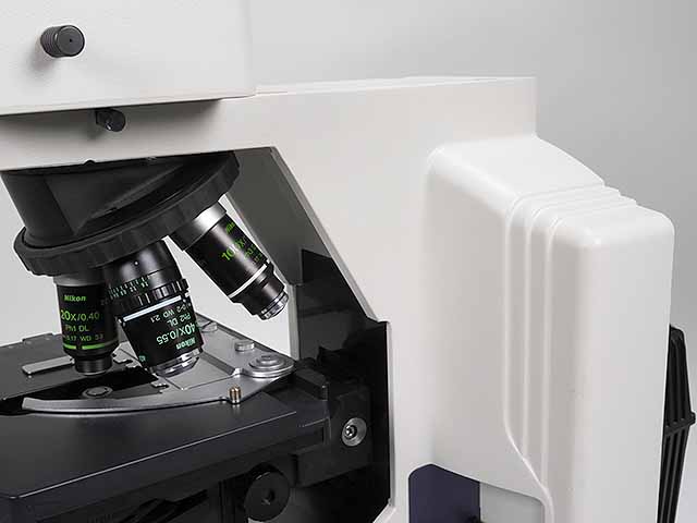 ニコン生物顕微鏡エクリプスE600です。対物レンズはCFI60光学系で10x/20x/40x/100xの4本セットです。鏡筒はCマウント付き3眼鏡筒です。程度は多少キズがある程度で美品だと思います。光学系、電装系、メカ系問題ありません。 |