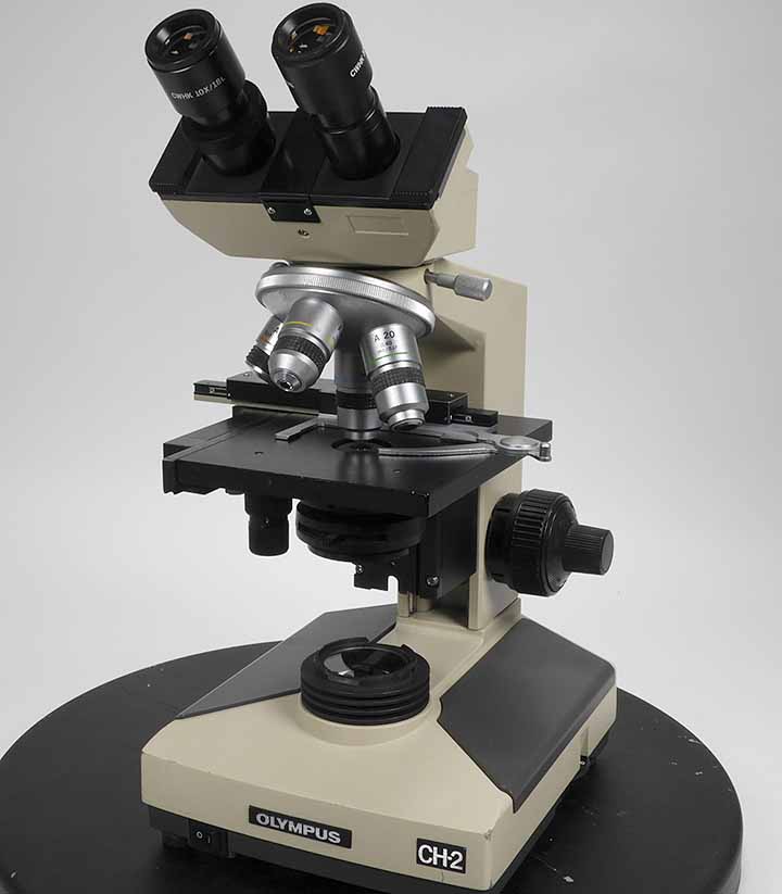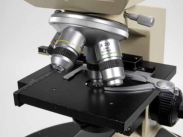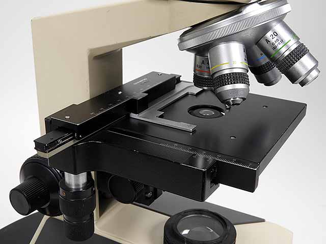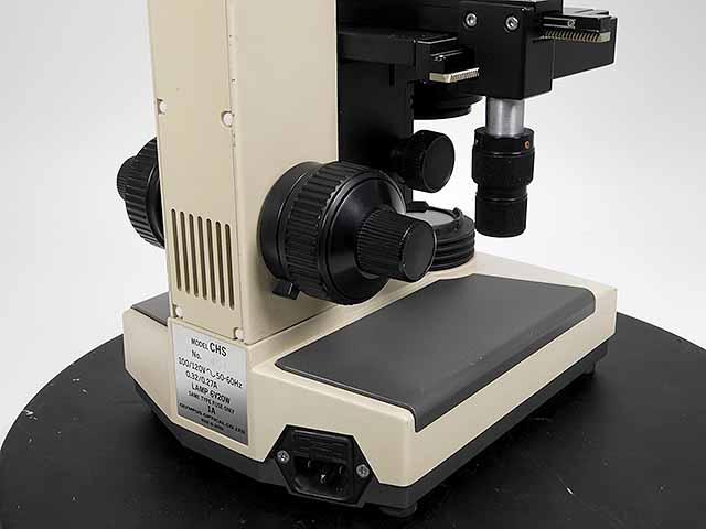 オリンパス生物顕微鏡CHSです。アクロマートレンズ4倍、10倍、20倍、40倍の組合せです。鏡筒は双眼鏡筒です。照明はハロゲンランプとなります。外観は多少キズがありますが良好だと思います。光学系、電装系、メカ系問題ありません。