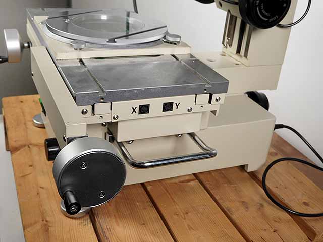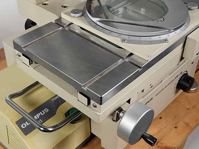 オリンパスのXY3軸寸法測定顕微鏡です。透過明視野観察及び落射明暗視野観察ができます。対物レンズは4x,10x,20xです。測長範囲はX150mm,、Y50mmで,Z40mm最小読取単位は0.1μとなります。測定精度は実測値で最大で5μです。