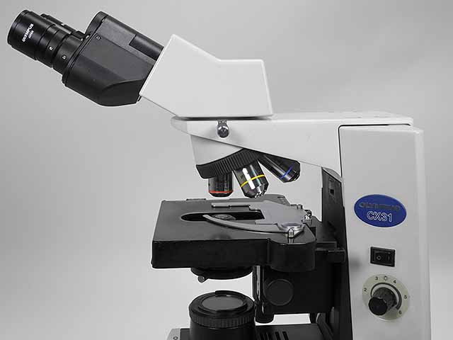 オリンパスの無限補正光学系の生物顕微鏡CX31です。UISプラン対物レンズ4x,10x,40xが付きます。鏡筒は双眼鏡筒です。 |