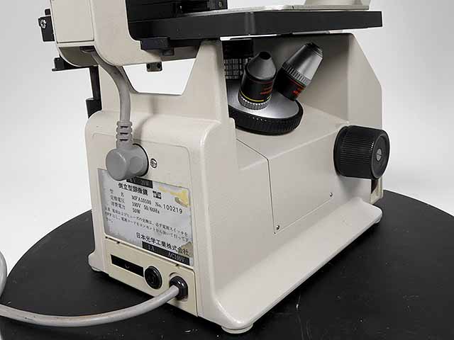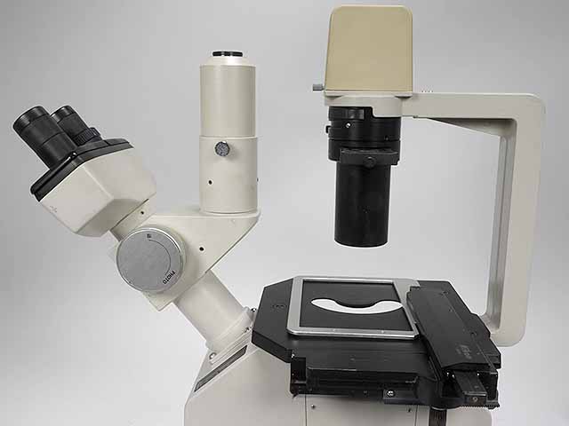 ニコンの倒立型培養顕微鏡です。対物レンズは4x,10x,20xとの組合せで全倍率で位相差観察ができます。外観はキズ、塗装剥げ等少々ありますが光学的、メカ的、電気的な問題は特にありません。(影響ないホコリ、キズ除く) |