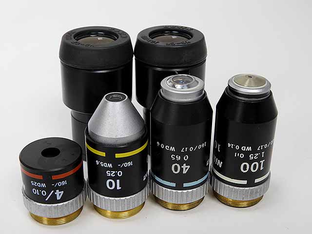 ニコン生物顕微鏡YS100です。4x,10x,40x,100xとの組合せです。光学系、電装系、メカ系問題ありません。 |