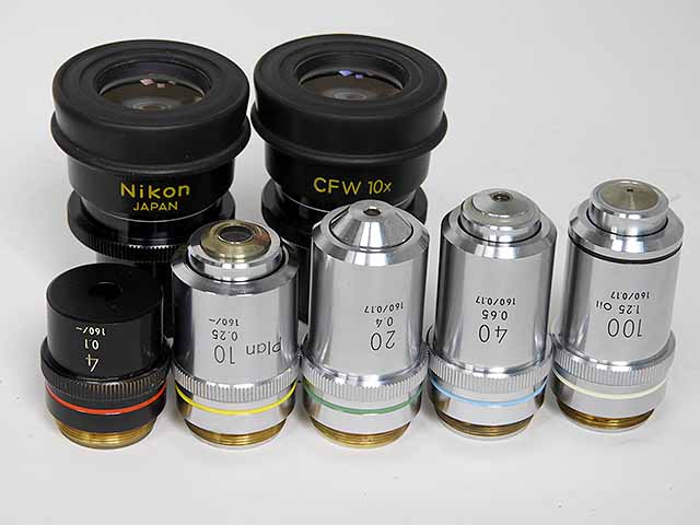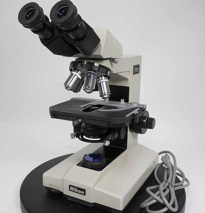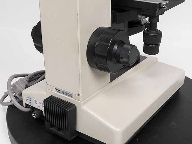 ニコン生物顕微鏡ラボフォトです。対物レンズは4x,10x,20x,40x100xの5本の組合せです。光学系、電装系、メカ系問題ありません。外観はキズ、塗装剥げがあります。 |