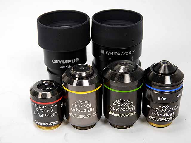 | 対物レンズ | UPlanFLN4x NA0.13 ∞/- UPlanApo10x NA0.40 ∞/0.17 UApo20x/340 NA0.75 ∞/0.17 UPlanApo40xoil NA1.00 ∞/0.17 |