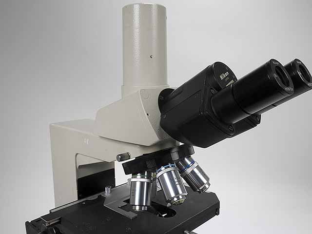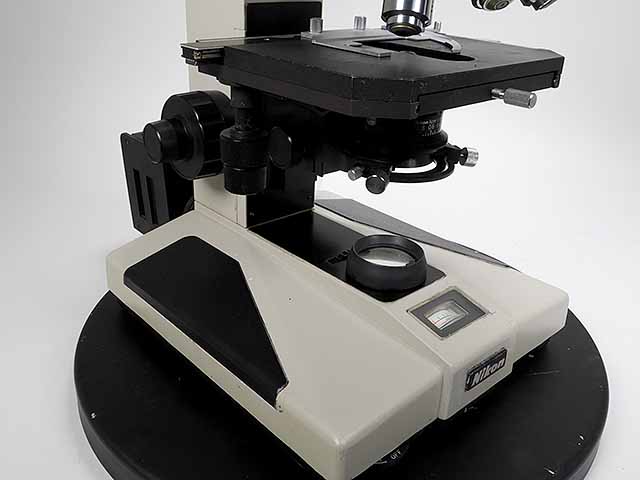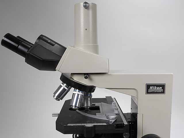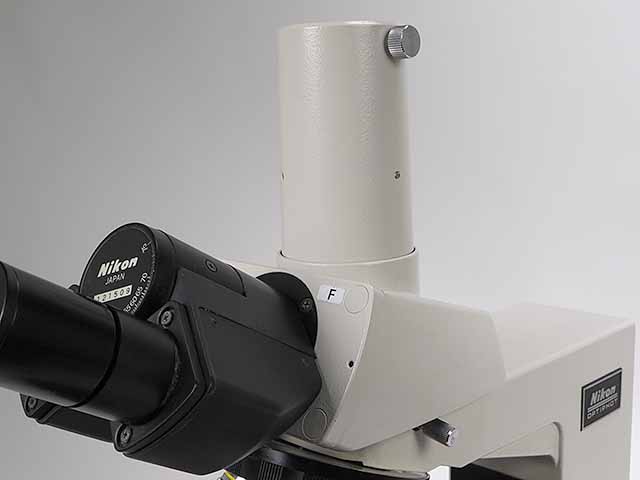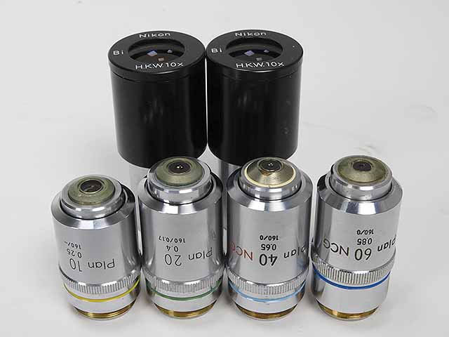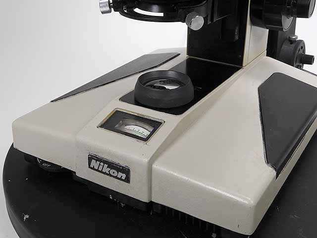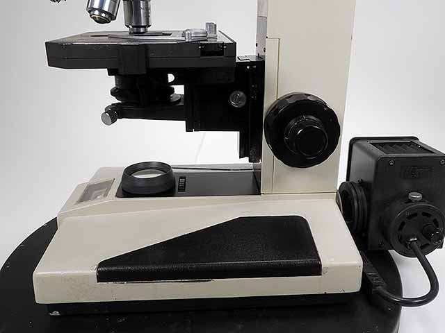 ニコン生物顕微鏡オプチフォトです。対物レンズは10x、20x、40x、60x(40x60xはノーカバー)となります。鏡筒は写真ポート付3眼鏡筒となります。外観はキズ、塗装剥げが多少ありますが光学系、電装系、メカ系問題ありません。 |