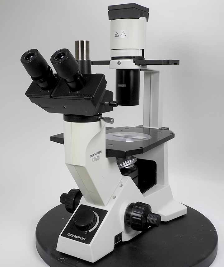 オリンパスの倒立型培養顕微鏡です。対物レンズは4x、10x、20x、40x の4本で明視野観察、位相差観察ができます。外観はキズ、塗装剥がれが多少あります。光学系、電装系、メカ系、共に問題はありません。 |