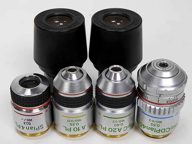 | 対物レンズ | SPlan4xPL NA: 0.13 160/- DAch10xPL NA: 0.25 160/0.17 LWD CA20xPL NA0.40 160/1.2 LWD CDPlan40x NA0.55 160/0-2 |