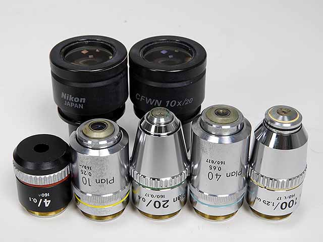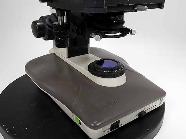 ニコン生物顕微鏡ラボフォト2です。対物レンズはプランレンズ4x,10x,20x,40x,100xとなります。鏡筒は3眼鏡筒です。外観はキズ、塗装剥げが多少ありますが光学系、電装系、メカ系問題ありません。 |