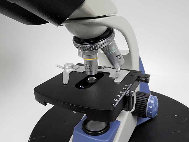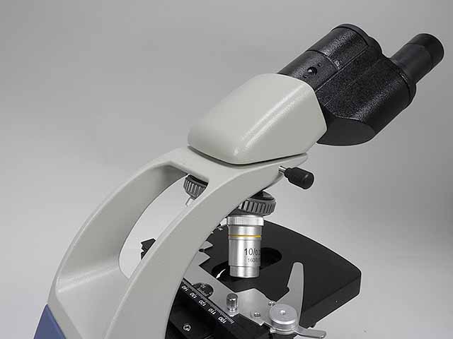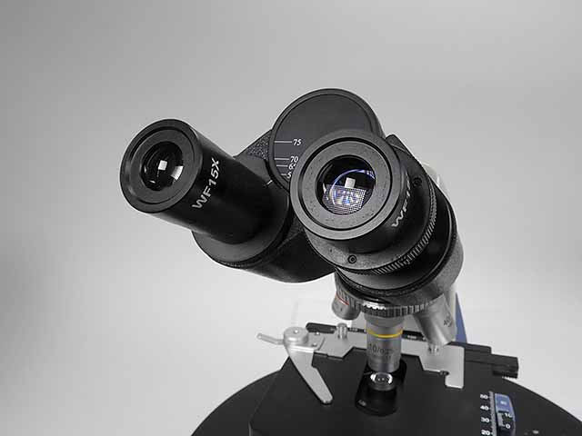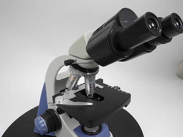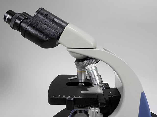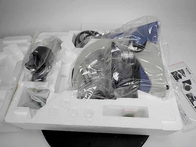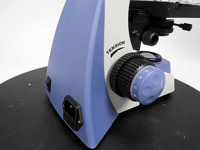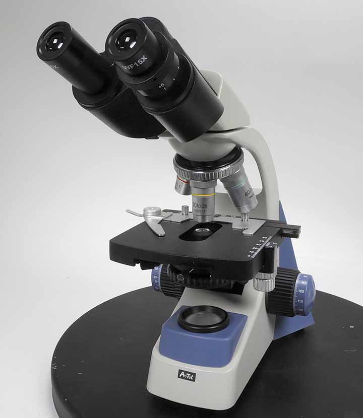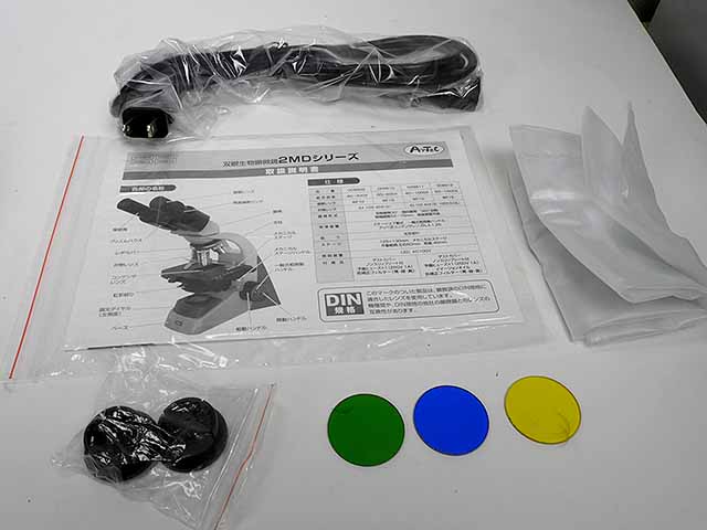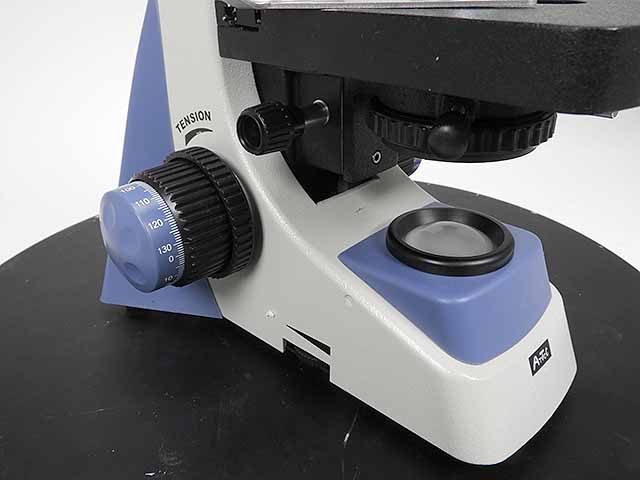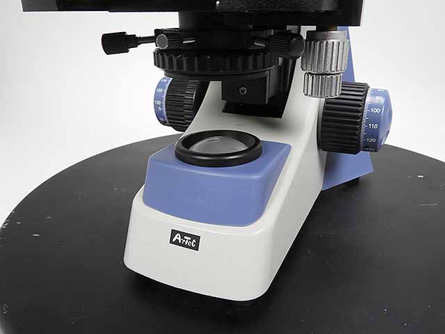 AirTecの生物顕微鏡です。対物レンズはアクロマート系4x/10x/40x、接眼レンズは15倍が付属します。LEDランプ電源内蔵です。光学的、メカ的、電気的な問題はありません。 |