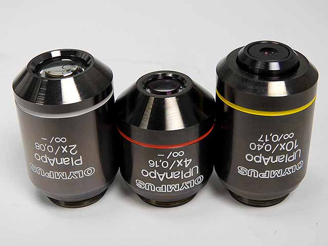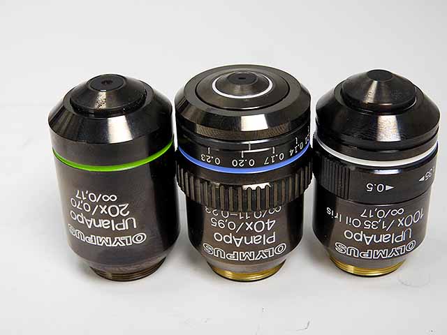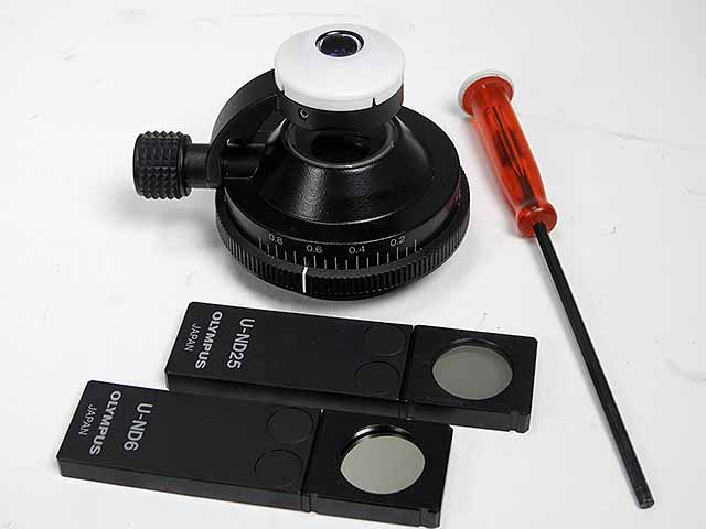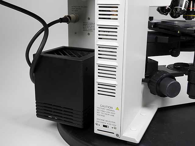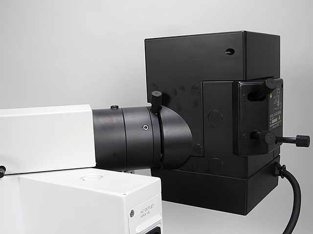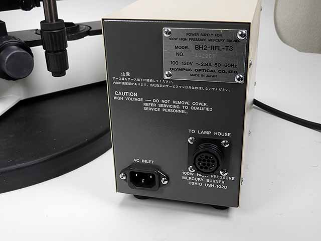 オリンパスの生物蛍光顕微鏡BX50-FLです。 対物レンズは最高級高解像レンズ2x,4x,10x,20x,40x,100xとなります。蛍光観察はU励起、IB励起、G励起の3種類です。鏡筒はCマウント付き超広視野3眼鏡筒となります。程度は多少傷がありますが光学的、メカ的、電気的な問題はありません。(影響ないホコリ、キズ除く) |