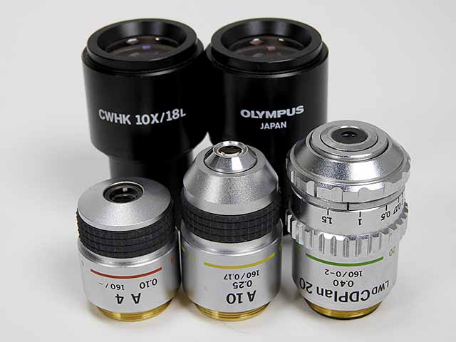 オリンパスの倒立型培養顕微鏡です。対物レンズは4x、10x、20x の3本で明視野観察ができます。外観はキズ、塗装剥がれが多少あります。光学系、電装系、メカ系、共に問題はありません。 |
