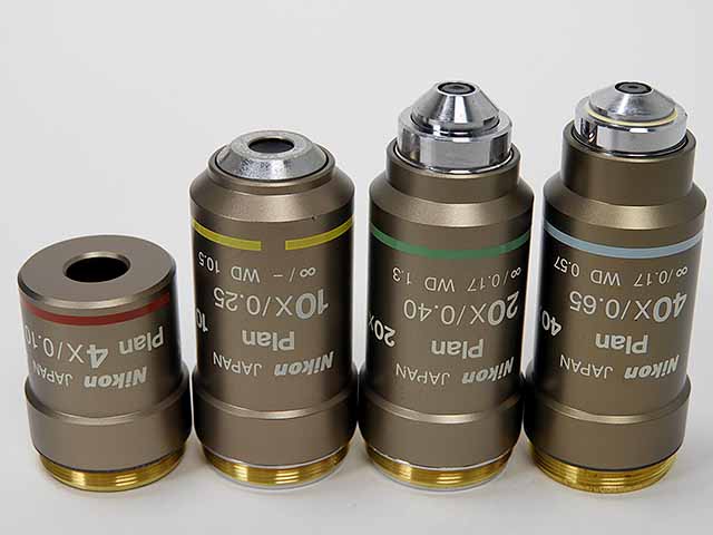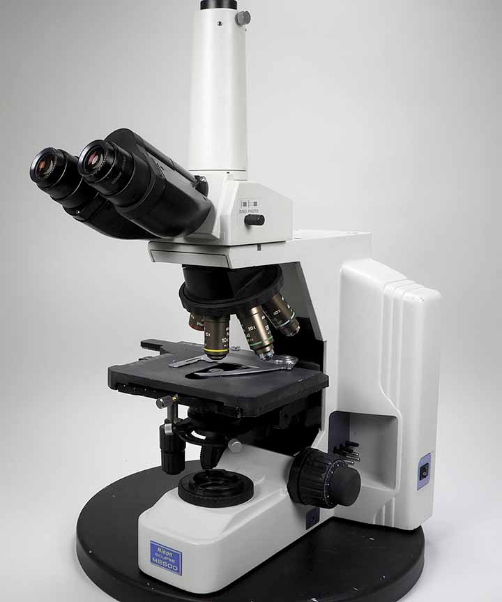 ニコン生物顕微鏡エクリプスE600です。対物レンズはCFI60光学系で4x/10x/20x/40xの4本セットです。鏡筒は写真マウント3眼鏡筒ですが+5000円でCマウントアダプタに交換可能です。程度は多少キズがありますが光学系、電装系、メカ系問題ありません。 |