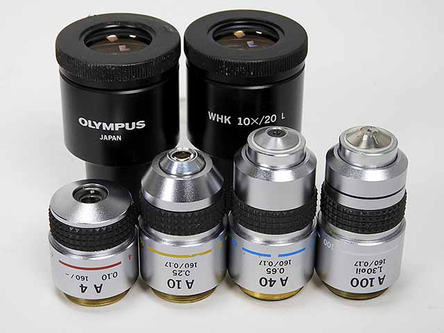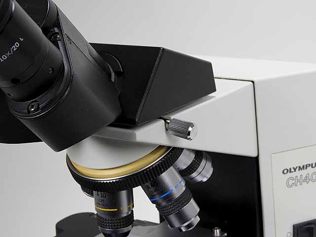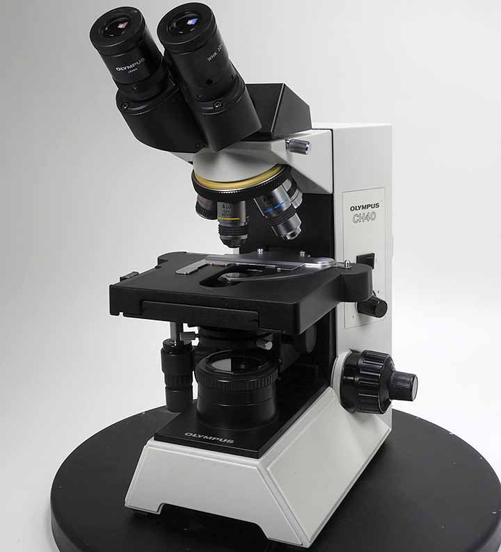 オリンパス生物顕微鏡CH40です。アクロマートレンズ4倍、10倍、40倍、100倍の組合せです。照明は20Wハロゲンランプになります。外観は多少キズ、塗装剥がれがありますが光学系、電装系、メカ系問題ありません。 取説、イマージョンオイルが付属します。 |