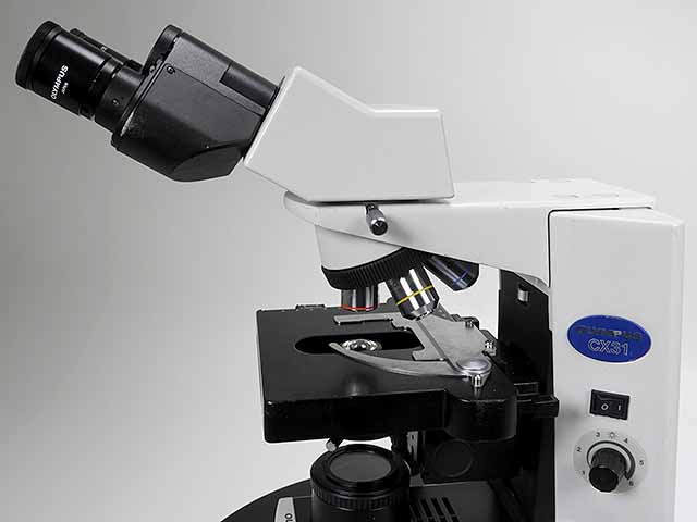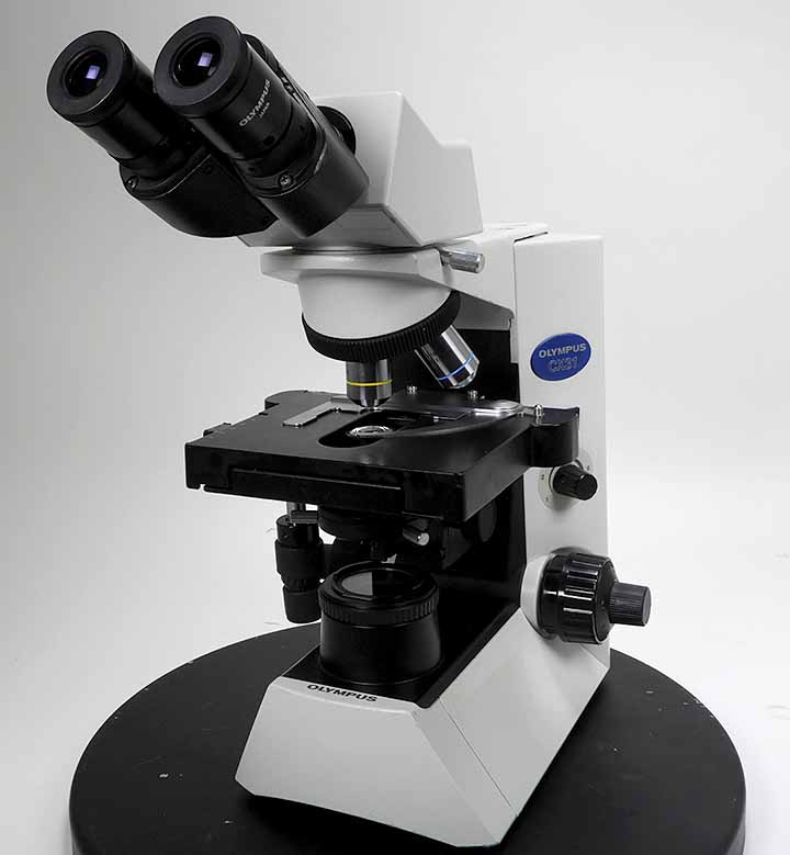 オリンパスの無限補正光学系の生物顕微鏡CX31です。UISプラン対物レンズ4x,10x,40xが付きます。鏡筒は双眼鏡筒です。 |