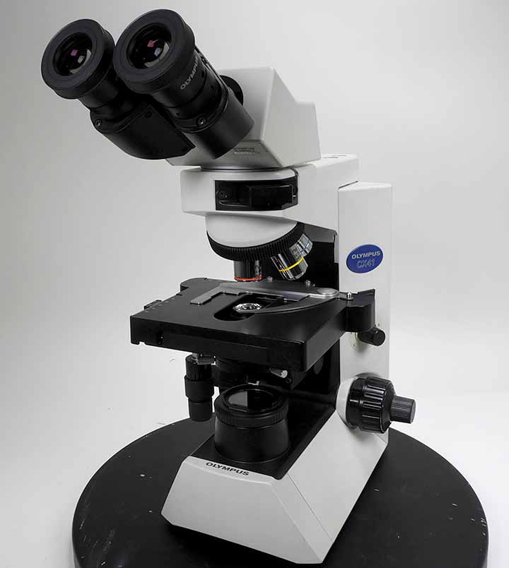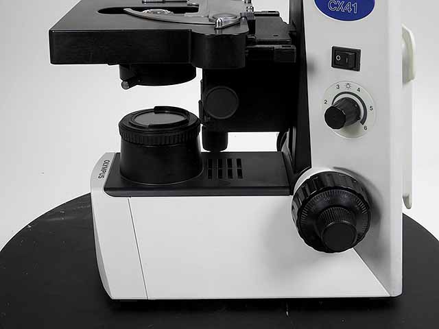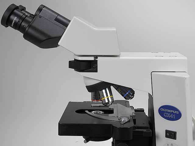 オリンパスの無限補正光学系の生物顕微鏡CX41です。UISプラン対物レンズ4x,10x,40xが付きます。鏡筒は双眼鏡筒です。 |