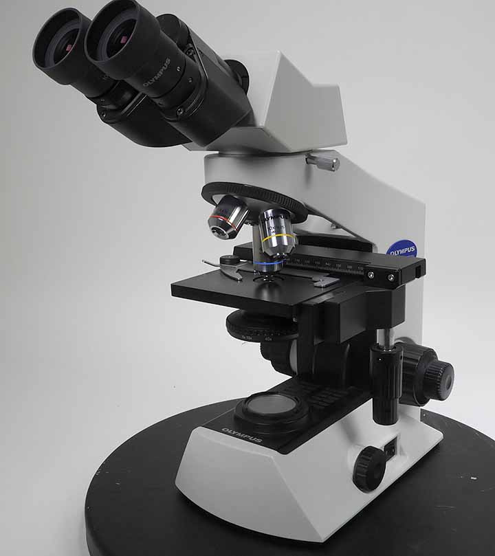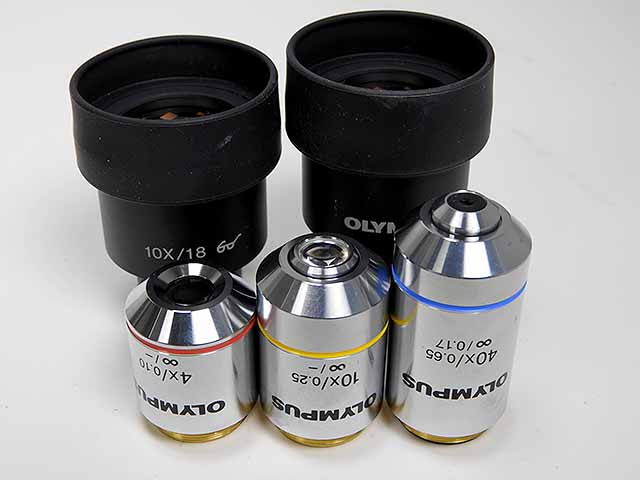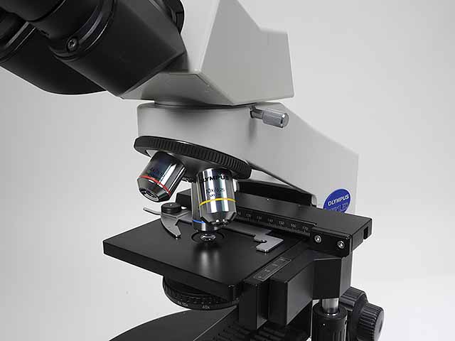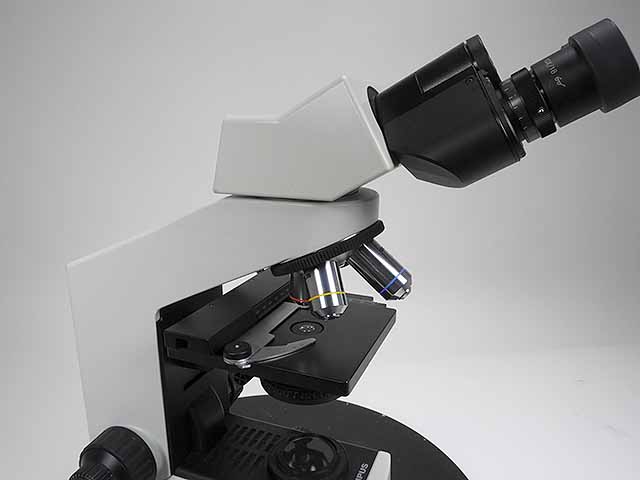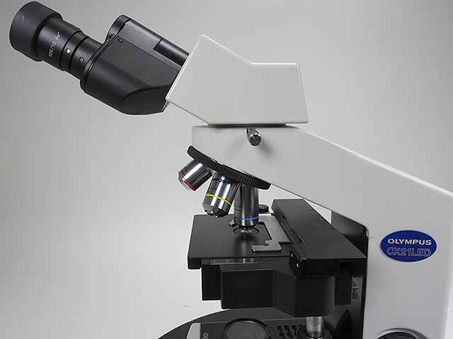 オリンパスの無限補正光学系の生物顕微鏡CX21です。UISプラン対物レンズ4x,10x,40xが付きます。鏡筒は双眼鏡筒です。 |