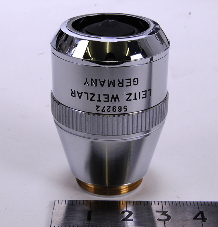 ライツ対物レンズです。明視野及び暗視野観察に対応します。光学系には問題ありません。ネジ取付径はΦ20mmです。 |