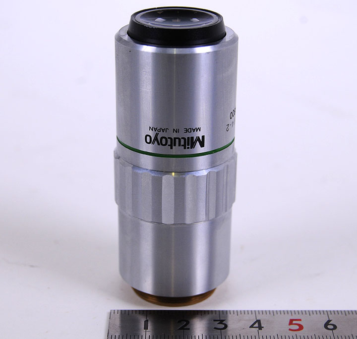 ミツトヨ対物レンズです。光学系には問題ありません。ネジ取付径はΦ20mmです。 |